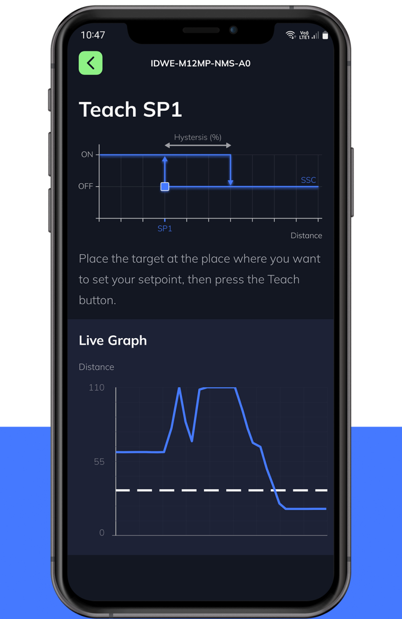 The Dynamic teach procedure defines a setpoint by averaging the sensors measurement value over a given or triggered period of time.