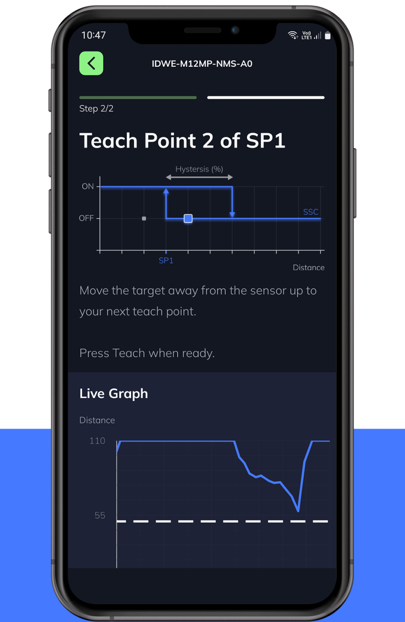 The setpoint is then placed in the middle of the two teach points.